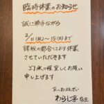 ホーム > 臨時休業のお知らせ > 「 日別アーカイブ:2026年02月11日 」 一覧 臨時休業のお知らせ 2026年2月 2026/02/11 臨時休業のお知らせ #京都, #臨時休業, おばんさい, わらじ亭 誠に勝手ながら 2/13㈮、14㈯を諸般の都合により臨時休業とさせていただきます ...